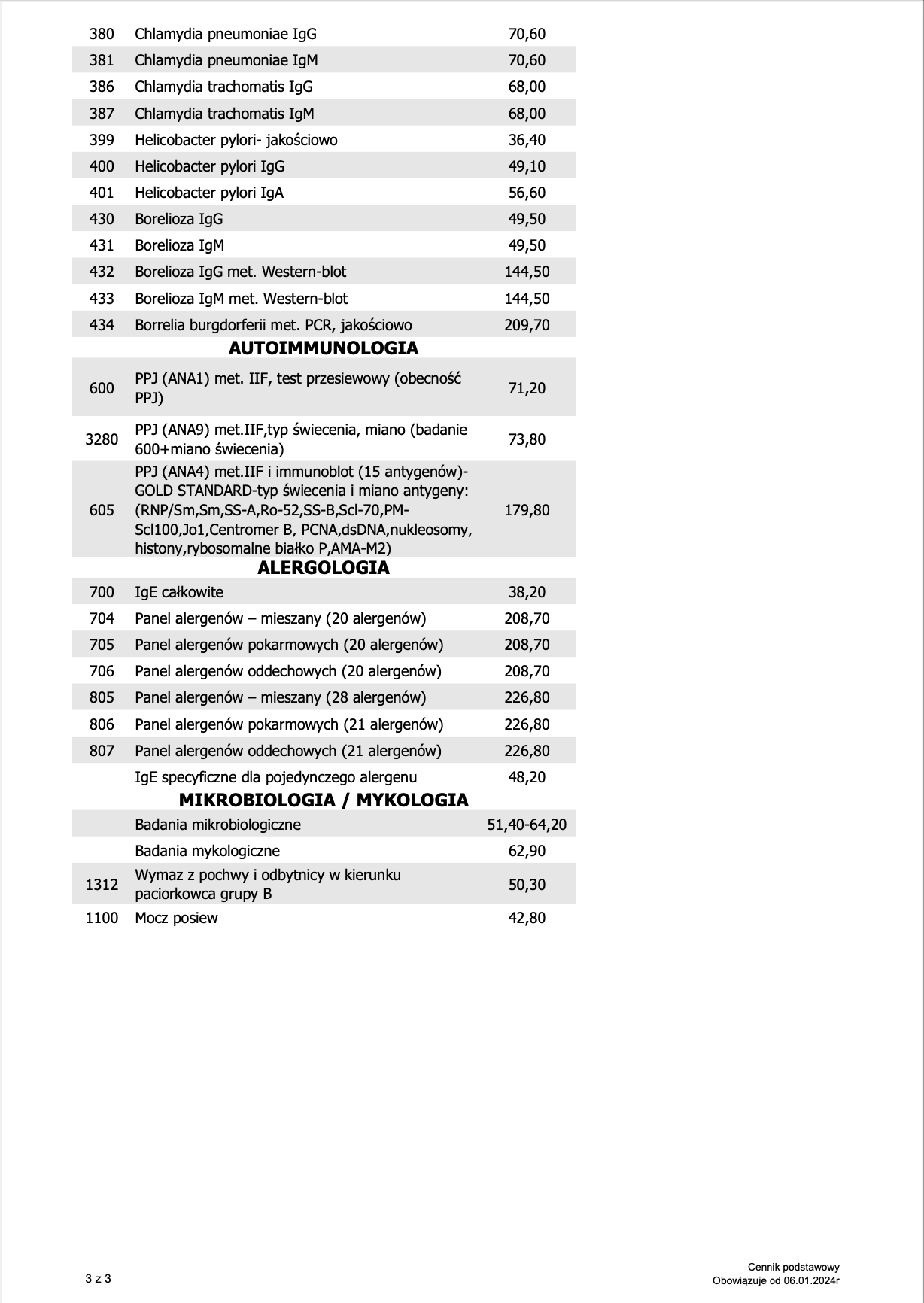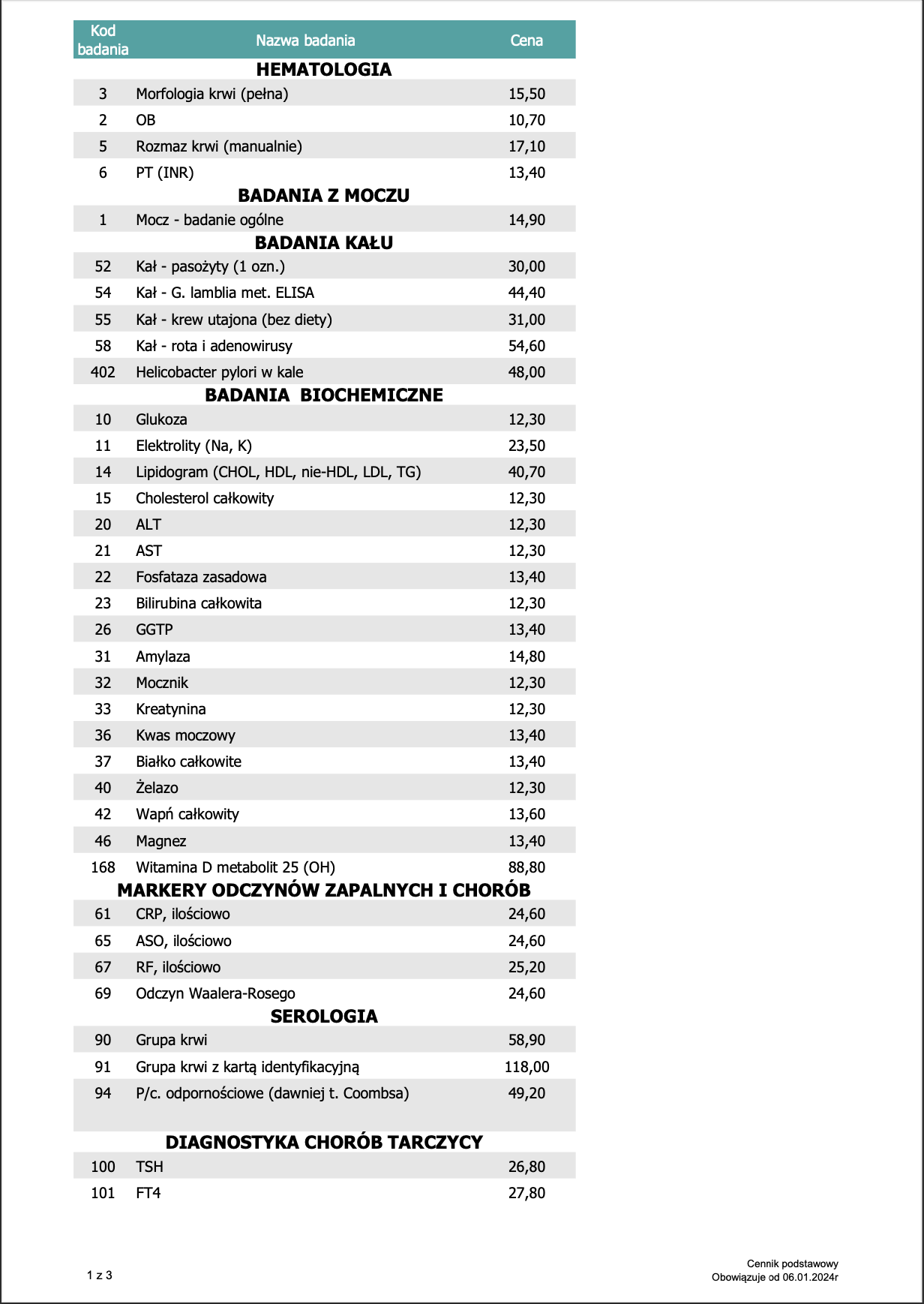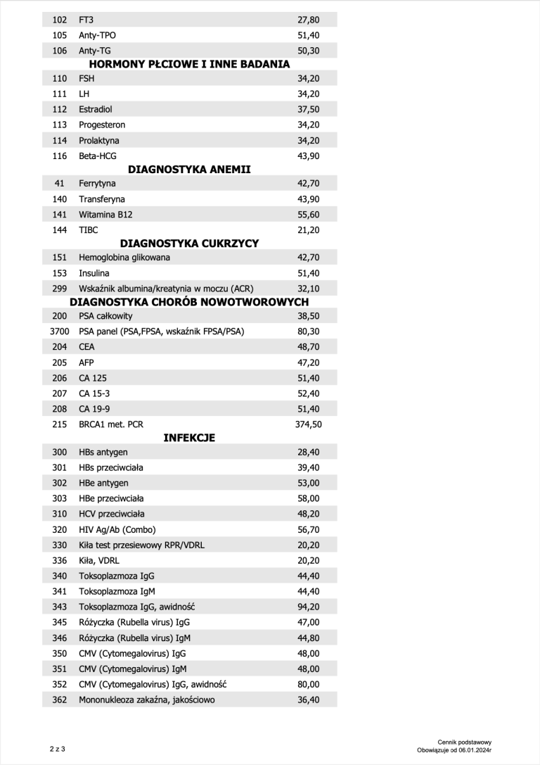 Cennik badań – Diagnostyka